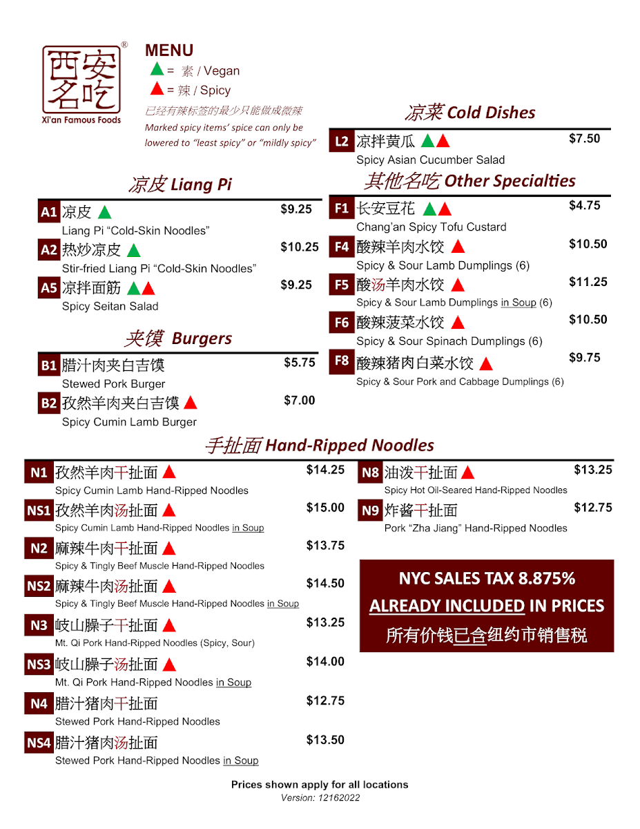A Xi’an classic. “Cold-skin” here refers to the refreshing texture of our house-made steamed wheat flour noodles. These chilled noodles are served with bean sprouts, cucumber, cilantro, and spongy cubes of seitan, perfect for soaking up our signature soy sauce and vinegar dressings. Chili oil recommended. [Vegan. Sauces on the side is required for all DoorDash orders. "Mildly spicy" orders must add chili oil packet to taste, as full serving of it is equal to regular spicy level]
