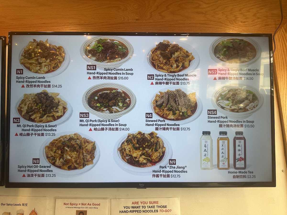 Lean beef muscle stewed until tender in house aromatics with a Sichuan peppercorn-laced ma la tingle, served on top of chewy hand-pulled wide noodles with comforting spoonfuls of simmering beef broth, topped with our signature sauces and chili oil. [If packed separately: reheat soup separately, then pour into the noodles along with the noodle sauce packet and mix well. Then top with the protein. No chili oil packet included/necessary for this]